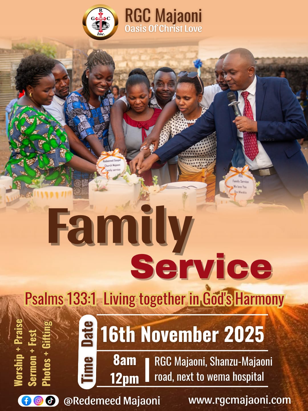 Join us this Sunday, 16th November 2025, for our Family Service at RGC Majaoni, Shanzu-Majaoni road (next to Wema Hospital), from 8:00 AM to 12:00 PM.
